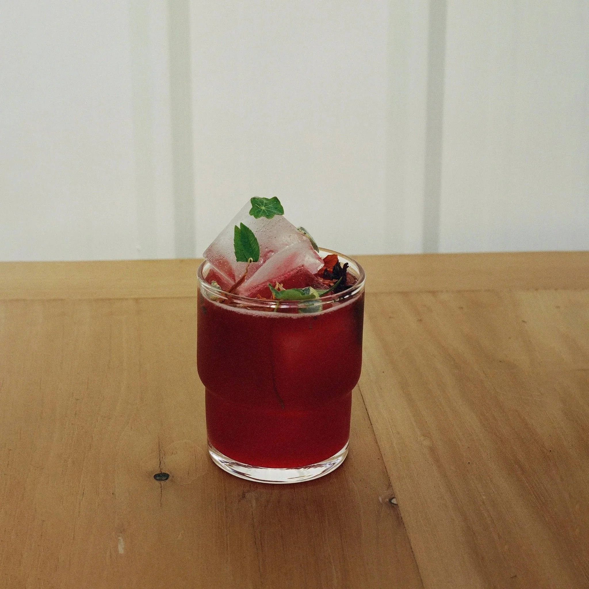 Method: Shake, strain Glass: Single rocks w/ 2x ice cubes Garnish: seasonal herb sprinkle + dried marigold petals